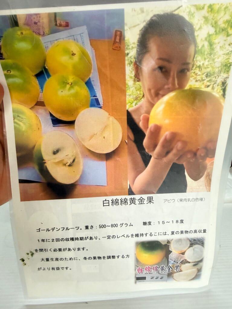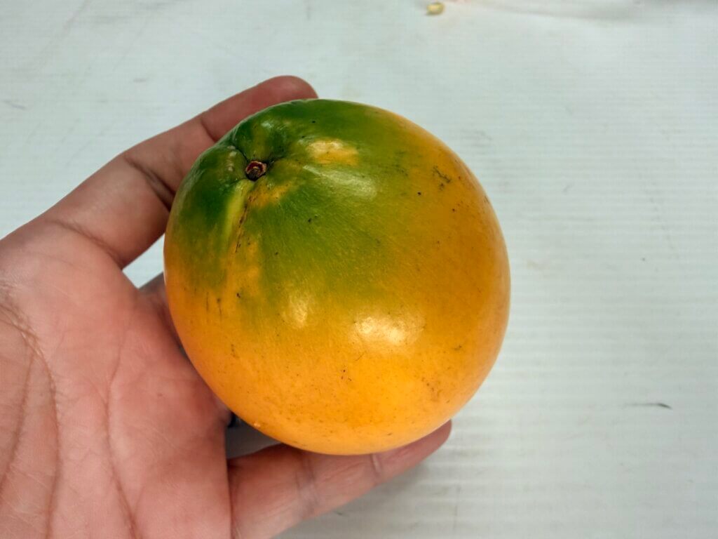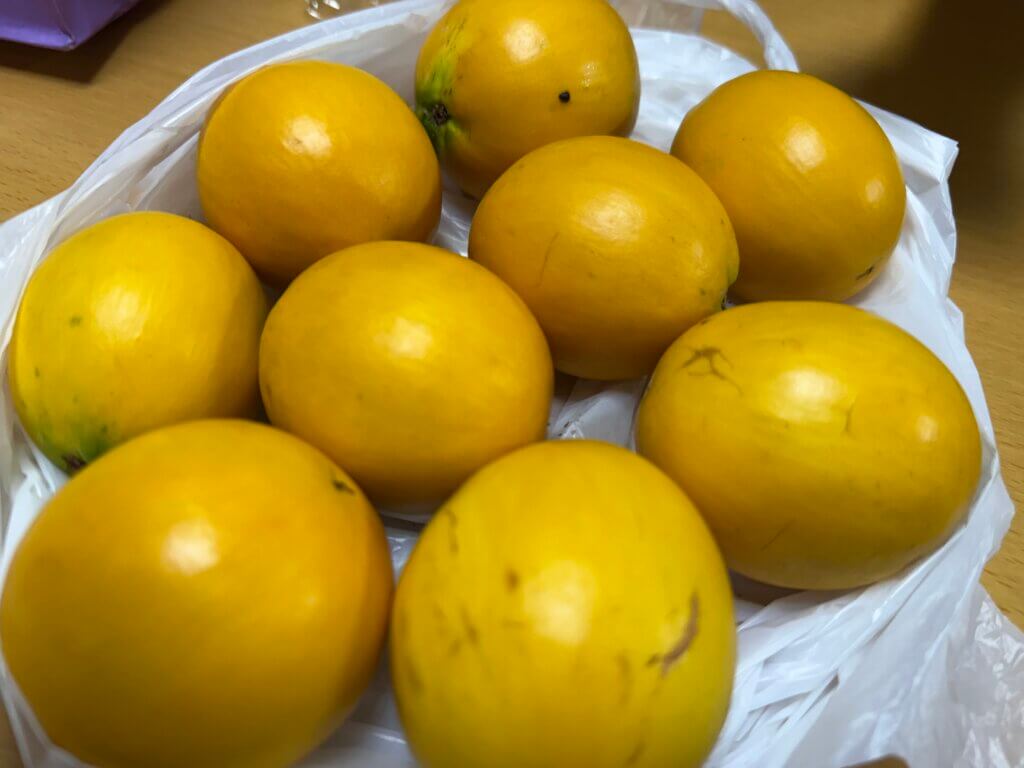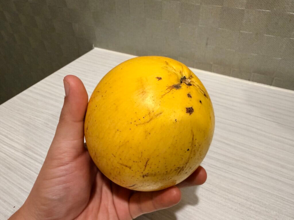 アビウの魅力はいくつもあるのだが,まず一番大きいのは,果実の見た目がとても良いことである.果実は黄色く熟し,形も丸く整いやすい.この黄色くて丸い果実というのは,市場や直売,あるいは初めて見た消費者に対して,非常に印象が良い.見た瞬間に「なんだこれ,食べてみたい」と思わせる力がある.さらに,丸い果実というのは,見た目だけではなく,持ち運びや扱いやすさにもつながる.細長い果実や突起の多い果実に比べると,箱詰めや運搬の際にも比較的収まりが良く,流通上も扱いやすい.こういう点は,実は普及を考えるうえでかなり重要である.
