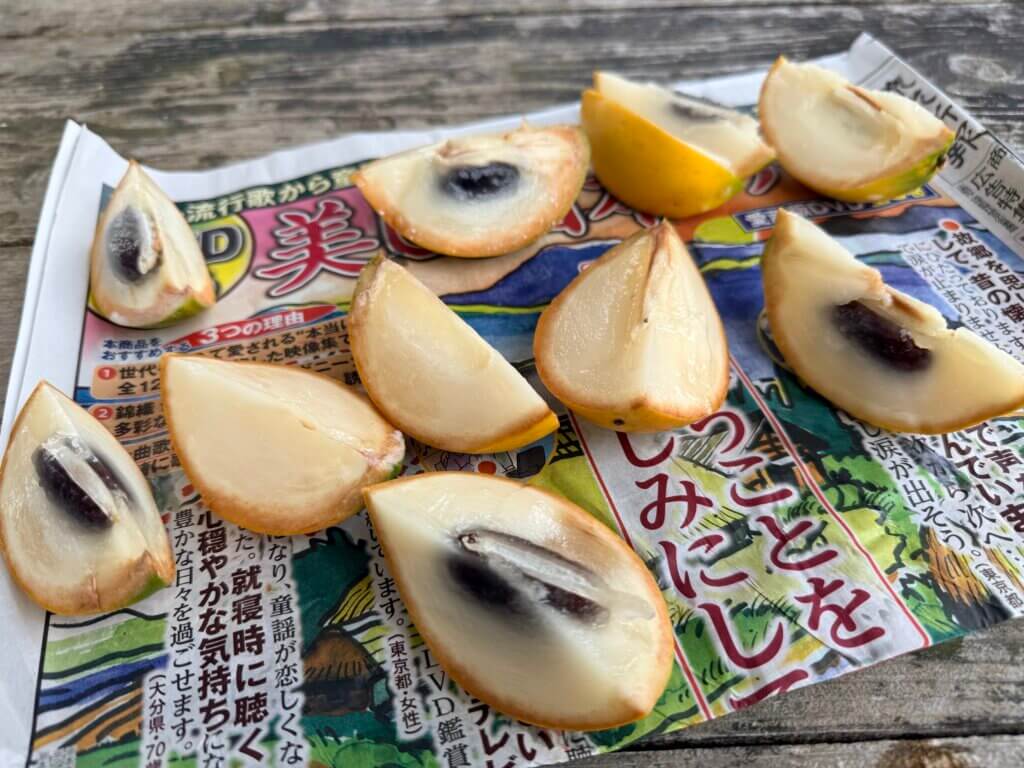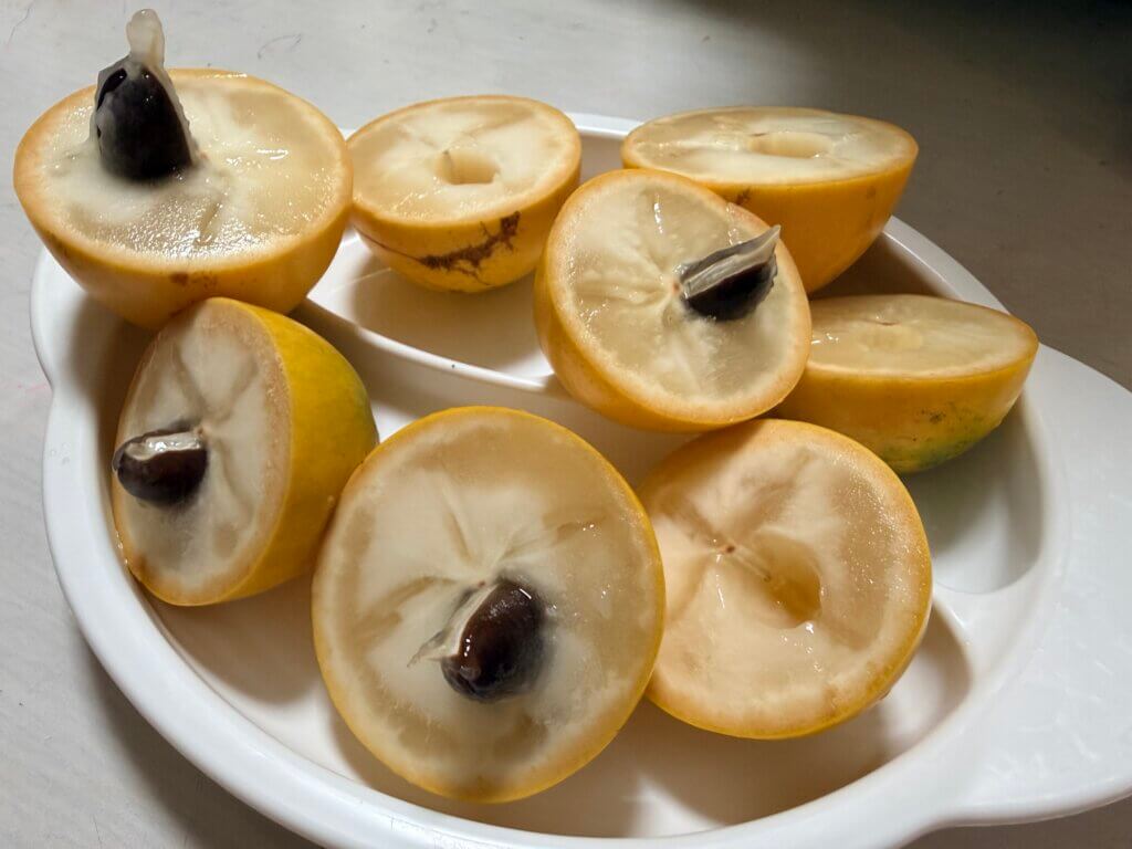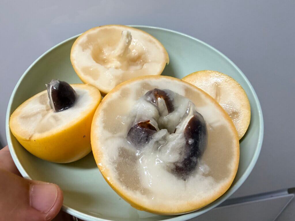 2026年3月に食べたアビウ.タネは1個から3個入っている.大きいものほどたくさん入っている.
