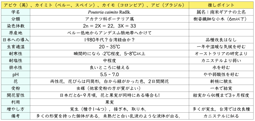アカテツ科ポーテリア属に属する果樹で,南米では古くから利用されてきた.